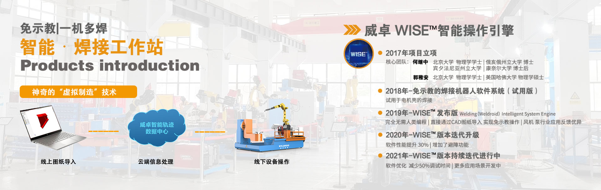無錫威卓智能機(jī)器人有限公司成立于2017年,是無錫市政府引進(jìn)的科技領(lǐng)軍型高新技術(shù)企業(yè),公司研發(fā)團(tuán)隊(duì)80余人,我們堅(jiān)持自主創(chuàng)新,利用自主開發(fā)的虛擬制造技術(shù)對傳統(tǒng)焊接行業(yè)進(jìn)行升級改造。 公司主推的工業(yè)風(fēng)機(jī)系列-智能焊接工作站產(chǎn)品,具有免示教、實(shí)時跟蹤、簡易工裝、傻瓜式操作等優(yōu)點(diǎn),真正幫助企業(yè)解決了招焊工難,用工成本高,焊接質(zhì)量不穩(wěn)定等問題。